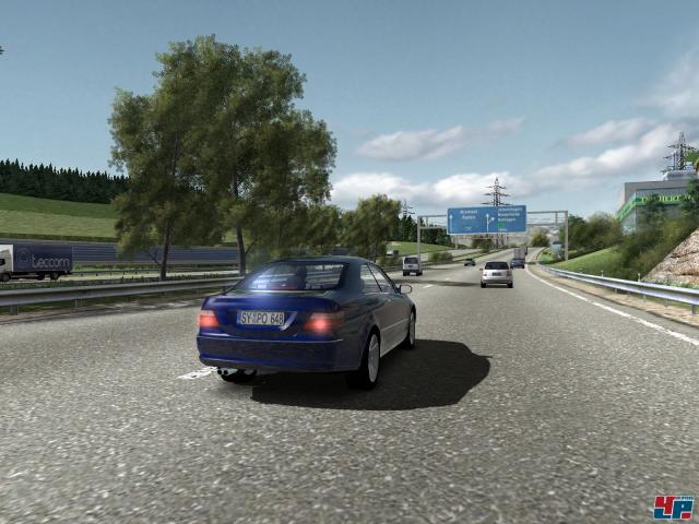 Kreuzungen? Auf Autobahnen? Nein, denn eure Einsätze führen euch zwischenzeitlich auch auf Landstraßen und in Städte, wo ihr ebenfalls euer schnell monoton werdendes Einsatzprogramm abspult. Um die Kulissen hier etwas lebendiger zu gestalten, haben die Entwickler die Bürgersteige und Plätze mit vielen Menschen gefüllt. Dumm nur, dass es sich dabei lediglich um billige Pappaufsteller handelt, durch die ihr zudem mit eurem Wagen problemlos HINDURCH fahren könnt, ohne dass etwas passiert. Doch auch bei Fahrzeugen konnten wir ab und an beobachten, dass diese vereinzelt durch unschöne Clippings ineinander geschoben wurden. Abgesehen davon leistet die offensichtlich an World Racing 2 angelehnte Engine gute Arbeit: Trotz vereinzelter Pop-Ups geht die Weitsicht in Ordnung und auch die Spiegelungen auf dem Lack sehen trotz pixeliger Darstellung und sichtbarem Bildaufbau noch passabel aus, genau wie die Texturen der Kulissen. Selbst die Geschwindigkeit kann trotz so vieler anderer Verkehrsteilnehmer überzeugen. Einzig die für Synetic typische „Mittelachsensteuerung“ in der Außenansicht sieht auch hier vollkommen lächerlich aus. Nervig sind zudem die automatischen Wiederholungen brisanter Szenen, die dummerweise erst ein ganzes Stück später urplötzlich eingespielt werden, während ihr eigentlich schon wieder voll mit der Weiterfahrt beschäftigt seid.