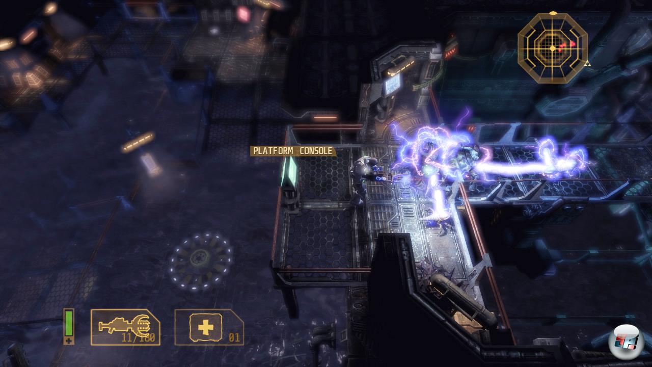 Anders als die drei exklusiven Koop-Levels lassen sich die Survival-Gebiete auch alleine bestreiten – ähnlich wie in Geometry Wars geht es hier um den Highscore, wenn der Raum von allen Seiten von Aliens gestürmt wird. Bereits auf der 360 kann sich die Action wieder sehen lassen, doch Steam-Nutzer bekommen – einen entsprechend hochauflösenden Monitor vorausgesetzt – noch eine Ecke mehr Details geboten. Ich habe mich gemütlich mit dem 360-Pad aufs Sofa vor den Full-HD-Fernseher verzogen, um das Spiel in 1080p zu genießen. Die PC-Fassung lässt sich sich schließlich auch in den Menüs komplett mit dem Controller bedienen (bis auf die übergeordneten Steam-Funktionen). Wer am Schreibtisch sitzen bleibt, profitiert dagegen wieder von der noch präziseren Maussteuerung.