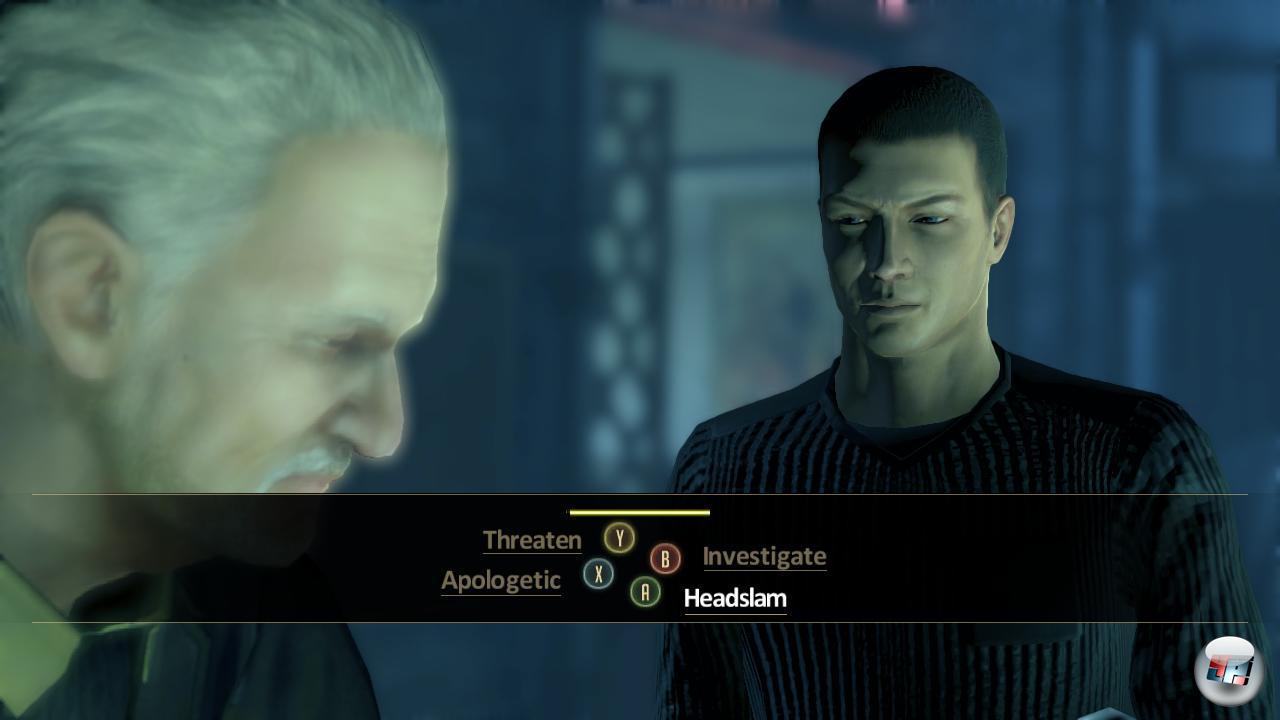 Allerdings gibt es keinerlei kommunikativen Fähigkeiten wie etwa Rhetorik, damit man in Gesprächen mehr Optionen hat. Trotzdem kann man den Pool an Antworten z.B. von drei auf vier Varianten erweitern, wenn man einen bestimmten Status bei Personen erreicht hat. Außerdem bietet Alpha Protocol weitaus mehr an Wühl- und Upgrade-Potenzial als etwa ME, weil man nahezu alles vom Lauf bis zum Griff und Visier an Waffen modifizieren, zig Geräte kaufen und noch mehr Statistiken begutachten kann. Das fängt bei der Panzerung an, die in die fünf Bereiche Ausdauer, Schadenssenkung, Geräuschdämpfung, Verbesserungen und Inventar unterteilt ist. Diese kann man mit bis zu vier Modulen verstärken, die wiederum alles Mögliche an Fähigkeiten unterstützen können: Es gibt Handschuhe mit digitalen Implantaten, die das Hacken erleichtern; es gibt Projektil dämpfende Polymerfaser, Digitaltarnung oder Chemikalien, die die Nutzungszeit der Fähigkeiten verlängern.