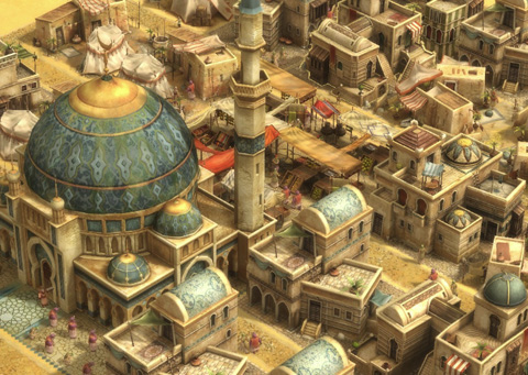 Allerdings kann ich die benötigten Gewürzplantagen noch nicht errichten. Es fehlt an Zugriffsrechten für das Gebäude und erst wenn ich 145 Nomaden in einem orientalischen Dorf ansiedele, darf ich für pikantere Nahrung sorgen. Nichts leichter als das, denn eine Nomadensiedlung verhält sich prinzipiell genauso wie eine Stadt aus dem Okzident: Der Basar dient als Marktplatz und danach muss ich mich um Datteln als Nahrungsmittel