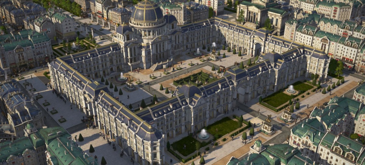 Der Palast wird als Bauwerk freigeschaltet, sobald man über einen Investor (fünfte und höchste Bevölkerungsstufe) verfügt – und wie gewohnt kann der DLC auch bei bereits gestarteten Spielen im Nachhinein aktiviert werden. Es ist ein modulares Gebäude, das sich von seinem Zentrum aus erweitern lässt. Anders als bei Zoo, Museum oder botanischer Garten erfordert er keine Mitbringsel von Expeditionen als Ausstellungsobjekte, die in den gebauten Modulen platziert werden müssen. Stattdessen baut man Palast und Flügel mit „normalen“ Ressourcen (Geld, Holz, Stein, Beton, Stahlträger, Fenster und Beton) und muss astronomische Unterhaltskosten zahlen.