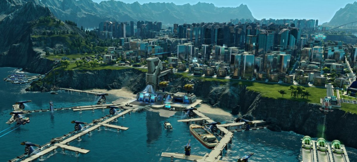 Das neue System erinnert ein wenig an die Nachbarschaften aus SimCity, nur dass diesmal keine mysteriöse „Cloud“ für „Berechnungen“ benötigt wird und man nicht online sein muss. Trotzdem sind die einzelnen Sektorkarten noch so groß bzw. bis zu fünfmal so groß wie die Umgebungen aus ANNO 2070, dass man dort Siedlungen an mehreren Orten errichten kann. Im Arktissektor können z.B. drei oder vier kleine Städtchen auf getrennten Inseln gebaut werden, wenn die vorhandenen Küsten- oder Minenbauplätze nicht ausreichen sollten.