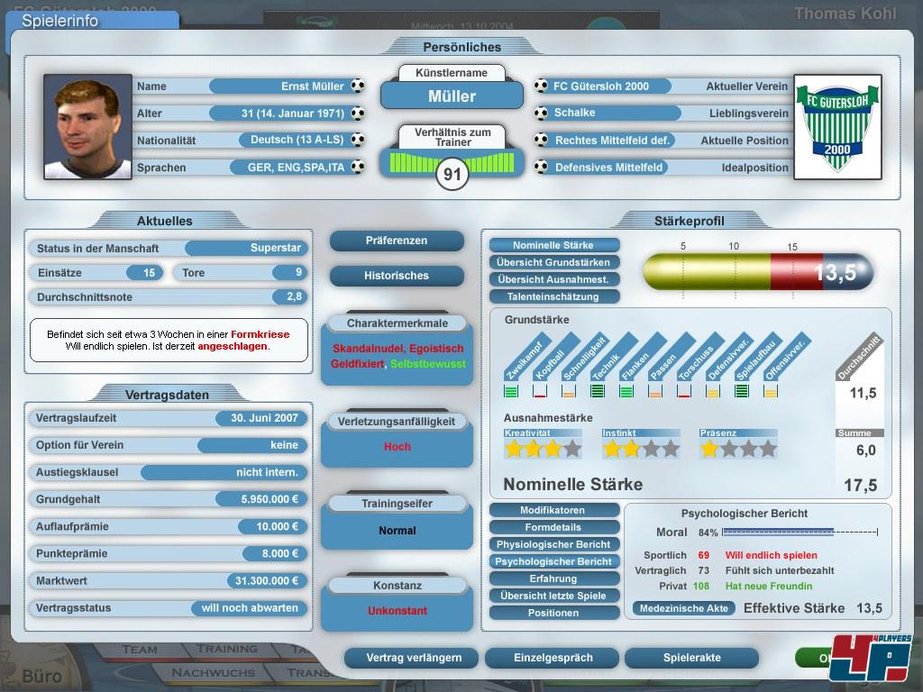 Dieses Problem könnte man zwar durch Einstellen einer maximalen „Zugdauer“ umgehen, doch auch dies birgt Konflikt-Potenzial: Das Gefühl für die „richtige“ Zeit ist relativ. Die einen schrauben gern ein wenig länger an ihrer Mannschaft, andere sind schnell fertig. In jedem Fall verstecken sich hinter dem gut gemeinten Mehrspieler-Modus diverse kleine Problemchen, die sich irgendwann summieren und die Laune verderben. Da helfen dann auch die interessanten Verhandlungen um Spieler nichts mehr, die sich ggf. bei menschlichen Kontrahenten im Team befinden.