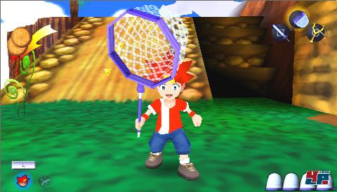 Was der PSP aber eindeutig fehlt, ist der zweite Analogstick. Vor allem bei einem Titel wie Ape Escape, dessen Spielsprinzip bekanntlich voll auf die beiden Sticks ausgelegt ist. Entsprechend gestaltet sich die Affenjagd auf dem Handheld deutlich weniger intuitiv und spaßig, da ihr hier wie bei jedem normalen Hüpfspiel vorgeht: Habt ihr den Lichtschwert-Knüppel z.B. auf die Dreieck-Taste gelegt, müsst ihr diese immer wieder drücken, um zu schlagen. Auch die Bedienung des Fangnetzes und aller anderen Geräte funktioniert nach diesem Prinzip, das absolut keine Besonderheit darstellt. Leider hat man es versäumt, sich neben dem grafisch minimalen Facelifting auch um die störrische Kamera zu kümmern, die das Geschehen mit ihren lahmen Reaktionen und ungünstigen Positionierungen nur selten perfekt einfängt. Zwar könnt ihr das Dilemma mit dem Digi-Pad manuell korrigieren, doch gerade bei der Verfolgung eines der insgesamt 200 Affen habt ihr dafür schlichtweg keine Hand frei. Ironischerweise als hilfreich erweisen sich die zahllosen Clipping-Fehler, mit denen ihr auch durch Gebäude und andere Objekte hindurch die fliehenden Primaten oft im Blick behaltet. Vom Horizont seht ihr dagegen wenig, denn dieser verschwindet oft in einer dicken Nebelsuppe, die Erinnerungen an das N64 weckt. Hier wäre grafisch sicher mehr drin gewesen. Auch haben die Entwickler ein Problem nicht lösen können, von dem leider viele PSP-Titel geplagt werden: die Ladezeiten. Diese fallen