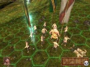 Das Umherstreifen ist ganz entspannt, da die Monsterhorden fest an bestimmten Stellen stehen, ohne sich zu bewegen. Ihr bestimmt also selbst, wann die in Runden ablaufenden Kämpfe losgehen sollen. Natürlich blockiert schon mal eine Horde Orks den einzigen Weg, den ihr lang müsst. Scharmützel laufen auf einer taktischen Karte, wo ihr euren Truppen seht, deren Aufstellung ihr zuvor grob bestimmt habt. Nahkämpfer stellt ihre vorne auf, Fernkämpfer und Zauberer am besten dahinter. Dann wird abwechselnd gezogen, wobei ihr die Gruppen des Feindes attackiert. Auch Krieger dürfen übrigens zaubern und werden zum Kampfmagier.