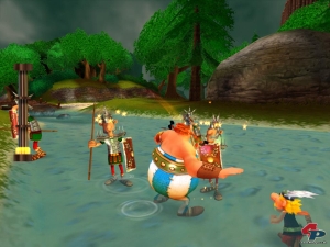 | Hier und da dürft ihr die Figur wechseln und mit Obelix Ohrfeigen verteilen. |