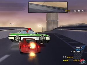 Wie in der Serie üblich, flitzt ihr durch allerlei deutsche Großstädte: München, Berlin, Hamburg und Köln werden unsicher gemacht. Anfangs gibt es eine Kennenlern-Runde, danach dreht ihr eure Kreise gegen drei Kontrahenten, und seht zu, dass ihr möglichst ganz oben auf dem Treppchen landet. Gelegentlich springt ihr auch in das grün-weiße Blech der Polizei, und müsst böse Autoschieber-Banden stoppen, in dem ihr den Wagen kaputtrammt. Alle paar Level bekommt ihr zur Belohnung einen neuen Wagen, mit dem ihr weiteres Unheil stiften könnt.