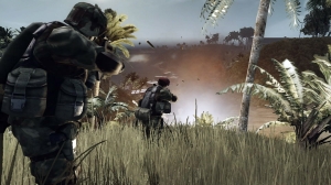 Seid ihr durch die Battlefield 2-Prachtgrafik verwöhnt, müsst ihr auch an der Xbox 360 zwei Gänge zurückschalten: Das Gebotene sieht prima, aber beim besten Willen nicht spektakulär und schon gar nicht nach Next-Gen aus. Gut designte Levels, nette Waffen, ansehnliche Figuren – die Optik ist bemerkenswert, lässt es aber an Details mangeln. Der größte Vorteil der 360-Version ist die flüssige Grafik, ansonsten unterscheidet sich die Kulisse nur marginal von ihren Current-Gen-Brüdern – ein paar mehr Shadereffekte auf den Klamotten und dem Boden, etwas polygonlastigere Figuren, ein Tiefenunschärfe-Effekt für den Hintergrund, aber abgesehen von der höheren Auflösung sieht die HD-Variante nicht wirklich besser aus. Außerdem sind die Umgebungen gewohnt steril, es gibt keinerlei Interaktionsmöglichkeiten, es sei denn, die Entwickler sehen sie vor. Der Rest bleibt gleich: dicke Explosionen, gut gemachte Renderfilme und ordentlich geskriptete Szenen im Einzelspielermodus. Auch die Wettereffekte können sich sehen lassen,