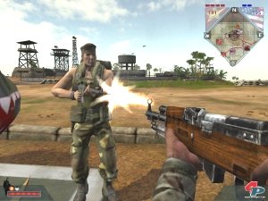 Grafisch hat sich einiges getan: Zwar sieht die Optik auf den ersten Blick vertraut aus, aber die 3D-Engine wurde dem neuen Szenario angepasst und liefert glaubhaftes Dschungel-Flair. Ihr trabt durch hügelige Landschaften voller Bäume, Palmen und Büsche, watet durch dicht bewucherte Reisfelder, die hervorragende Deckung bieten, und kämpft euch durch bemerkenswerte Höhenunterschiede. Um den schnellen Flugzeugen Rechnung zu tragen wurde auch die Sichtweite enorm erhöht, allerdings sind die Karten insgesamt kleiner als gehabt, so dass ihr schnell von einem Ende zum anderen düst – verlasst ihr das Spielfeld, habt ihr einige Sekunden Zeit zurückzukehren, bevor ihr wegen Fahnenflucht exekutiert werdet.
