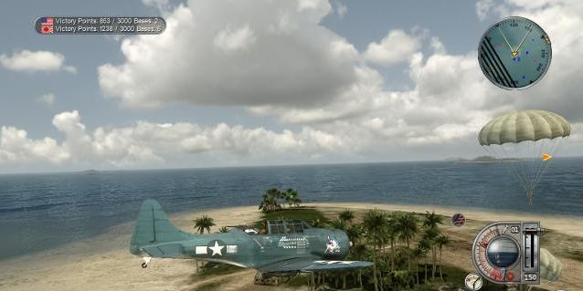 Wer sich schon durch Battlestations: Midway <a class="DYNLINK" onmouseover="DynToolTipp_Show('Klicken für Gameinfos‚)“ onmouseout=“DynToolTipp_Hide(); “ href=“javascript:DynCont_Display(‚Gamefinder‘,’runmod.php?sid=%7BSID%7D&LAYOUT=dyncont_gf&spielid=7067′)“> gekämpft hat, wird sich auch beim Nachfolger heimisch fühlen, denn das Grundprinzip ist immer noch das Gleiche: Entweder steigt man als Pilot in die authentisch modellierten Flugzeuge ein und liefert sich spannende Dogfights oder versucht sich als Kapitän von Schlachtschiffen und U-Booten. Zu allen Einheiten hält die Enzyklopädie massig Infos bereit, so dass historisch Interessierte auf ihre Kosten kommen. Als Spieler übernimmt man nicht die Rolle einer bestimmten Person, sondern schaltet einfach mit dem Digitalkreuz zwischen den verschiedenen Einheiten hin und her. Ohne einen Helden entwickelt sich in der Geschichte allerdings keine Dramaturgie, die ohnehin nur durch gesprochene Texte erzählt wird. Auch den Verlust von namenlosen Soldaten empfindet man als relativ gleichgültig, weil schon das nächste Geschwader darauf wartet, vom Spieler übernommen zu werden. Auf der anderen Seite steht dafür das Gefühl, an wirklich großen Schlachten teilhaben zu können – und das sowohl aktiv in der Rolle von Piloten oder Kapitänen als auch passiv als Stratege an der Karte. Denn wer es vorzieht, kann die Missionen auch angehen, ohne selbst MG-Salven, Artillerie-Geschosse, Torpedos oder Wasserbomben in Richtung des Gegners abzufeuern. Da die Steuerung nicht unbedingt optimal ist – vor allem Flugzeuge reagieren oft sehr träge – erledigt die KI die Aufgaben oft eh zuverlässiger, auch wenn sie ab und zu mit üblen Aussetzern zu kämpfen hat. Ich konnte z.B. mehrmals beobachten, dass KI-Piloten beim angeordneten Landeanflug auf einen Flugzeugträger immer wieder abstürzten bzw. gegen den Kommandoturm flogen.