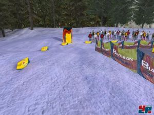 Ski fahren oft neben der Spur, was besonders ärmlich wirkt. Auch das unbewegliche Publikum aus den immergleichen Typen spricht Bände, ebenso wie die geklonten Bäume. Die ständigen Stürze bei denen der Athlet theatralisch einknickt, sind ebenfalls ärmlich geraten. Zudem wiederholen sie sich, so dass ihr eigentlich immer gleich strauchelt. Ebenfalls lächerlich sind die riesenhaften Schneeflocken, die sporadisch rieseln und direkt aus der übrig gebliebenen Weihnachtsdekoration eines Kaufhauses zu stammen scheinen.