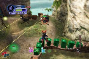 Das hört sich im wahrsten Sinne des Wortes nicht gut an. Ist Blinx also erneut eine Enttäuschung? Hat der Kater gar nichts hinzugelernt? Doch, hat er. Das Team von Artoon hat unsere akustische Kritik zwar ignoriert, aber die spielerische ernst genommen. Viele Frustfaktoren wurden ausgemerzt: Die Kamera lässt sich fast ohne Zicken drehen, das Zeitlimit ist weg, unterschiedliche Kristalle lassen sich endlich frei aufsammeln, die Levels sind größer und das Missionsdesign motiviert mit alternativen Lösungswegen. Ihr habt z.B. die Wahl, ob ihr für einen flügellahmen Helikopter zwei große Batterien von einem dicken Keofisch oder vier kleine von der Tom-Tom-Gang stibitzen wollt.