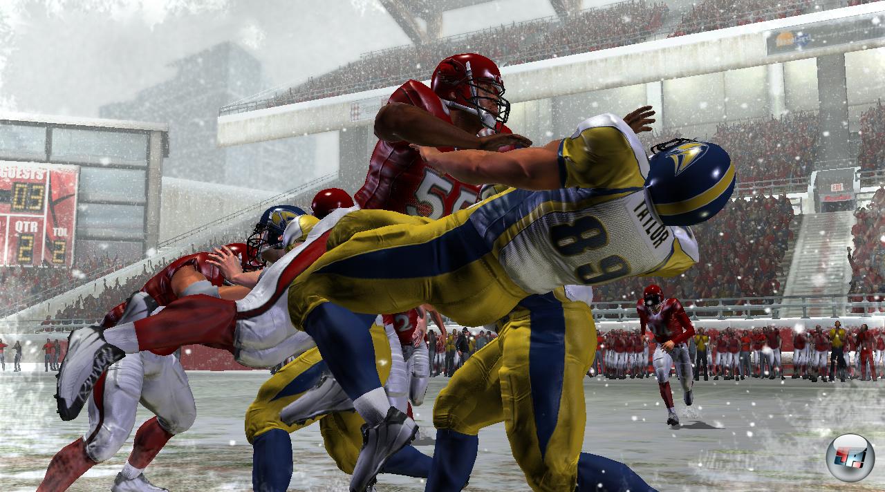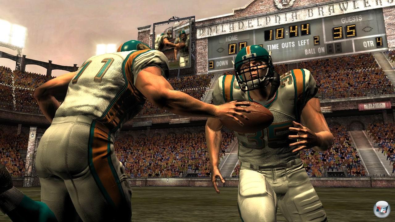 Die ebenso spektakulären wie an der Erträglichkeitsgrenze liegenden vorberechneten Verletzungsvideos haben wir bereits erwähnt. Doch wie sieht es mit dem Rest der Kulisse aus. Kann man mit dem Genre-Primus Madden NFL09 mithalten. Um es kurz zu machen: Nein! In keiner Form. Die Animationen sind nicht so geschmeidig, die Kollisionsabfrage ist nicht immer so genau und schaut man abseits des Feldes auf Trainer und Zuschauer fühlt man sich wie in eine SD-Vergangenheit zurück katapultiert – aua!