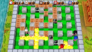 Wer ein Bomberman kennt, kennt sie alle: Ihr steuert eine kleine Figur mit Bombenfimmel durch eckige Levels und sprengt Wände sowie Gegner ins Sprite-Nirvana. So war das am NES, an der TurboGrafx-16, am Saturn, am GameCube, am DS – und natürlich bleibt das auch auf der PSP so. Der Einzelspielermodus besteht aus 100 Levels, in denen regelmäßig ein dicker Obermotz darauf wartet, von euch zurück in die Steinzeit gebombt zu werden. Während das Spielprinzip gewohnt locker dahinflockt, warten einige vom DS bekannte Neuerungen auf den Sony-Jünger: So werden eingesammelte Items (Bomben-Verstärker, Geschwindigkeits-Upgrades, Zeitverzögerer etc.) nicht wie gewohnt sofort eingesetzt, sondern in einer sich auf der linken Bildschirmseite breit machenden Leiste gelagert. Dort könnt