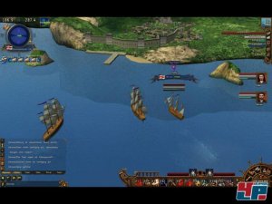 Wie schon bei der Grafik zeigt auch die Steuerung zwei Gesichter: Ist das Bewegen des Schiffes per Mausklick auf See oder im Gefecht noch eine feine Sache, so sehr versagt diese Steuerung an Land. Eine Wegfindungsroutine wurde gleich gar nicht versucht zu implementieren, allerdings sucht man eine Umstellungsmöglichkeit auf benutzerfreundlichere Tastensteuerung vergeblich. Ansonsten ist das Interface recht schlicht gehalten, man findet sich dort erst nach einiger Zeit zurecht, denn es gibt immer wieder Untermenüs oder weitere Infos erst nach Auswahl einer Fähigkeit.