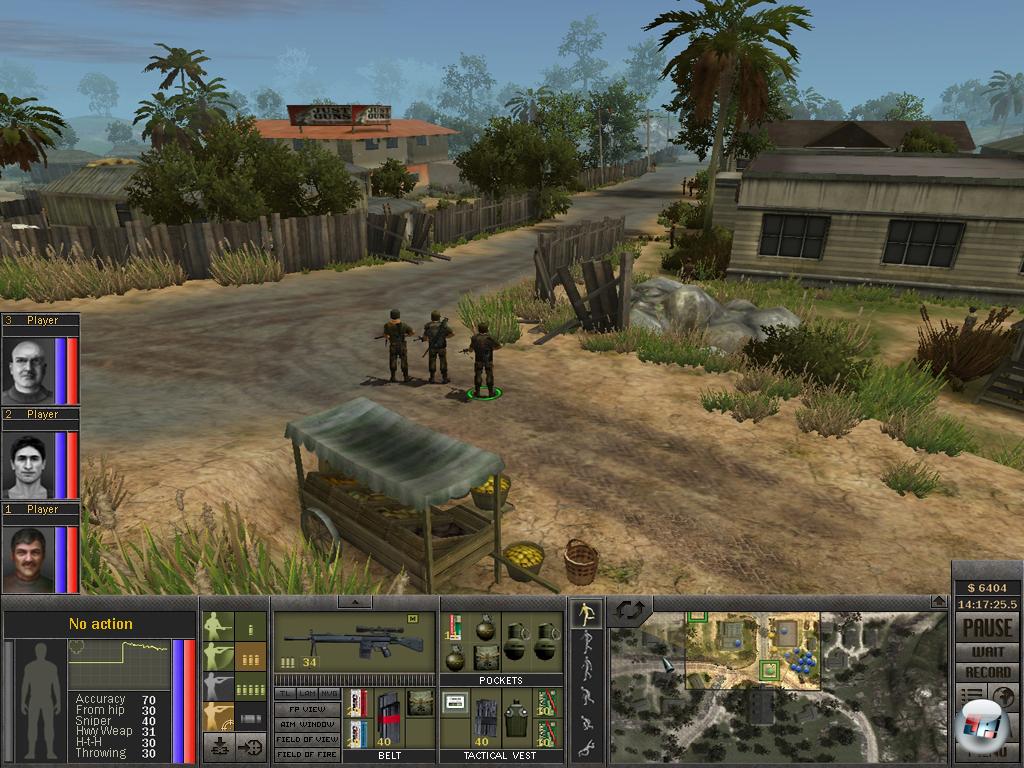 Nach einer ordentlichen Ladepause findet sich euer Söldner in der fiktiven südamerikanischen Bananenrepublik Algueira wieder, erneut im Dialog mit dem Auftraggeber. Dieser ist jetzt allerdings stumm und beantwortet die letzten Fragen in Textform. Fortan seid ihr auf euch gestellt, geistert in Echtzeit in der frei begehbaren, aber scharf begrenzten Stadt herum und findet Waffenhändler, andere Söldner, Touristen, Einwohner und allerlei Personen, die sich mehr oder weniger gerne mit euch unterhalten. Im Vergleich zu Brigade E5 wirkt die Welt dank mehr NPCs belebter und es sind einige nette Details zu beobachten: So verfolgen euch z.B. Personen beim Vorbeilaufen mit ihren „Blicken“. Trotzdem müsst ihr irgendwie über die haarsträubend hakeligen Animationen hinwegsehen und an der kargen Ausstattung der Innenräume hat sich nichts getan.