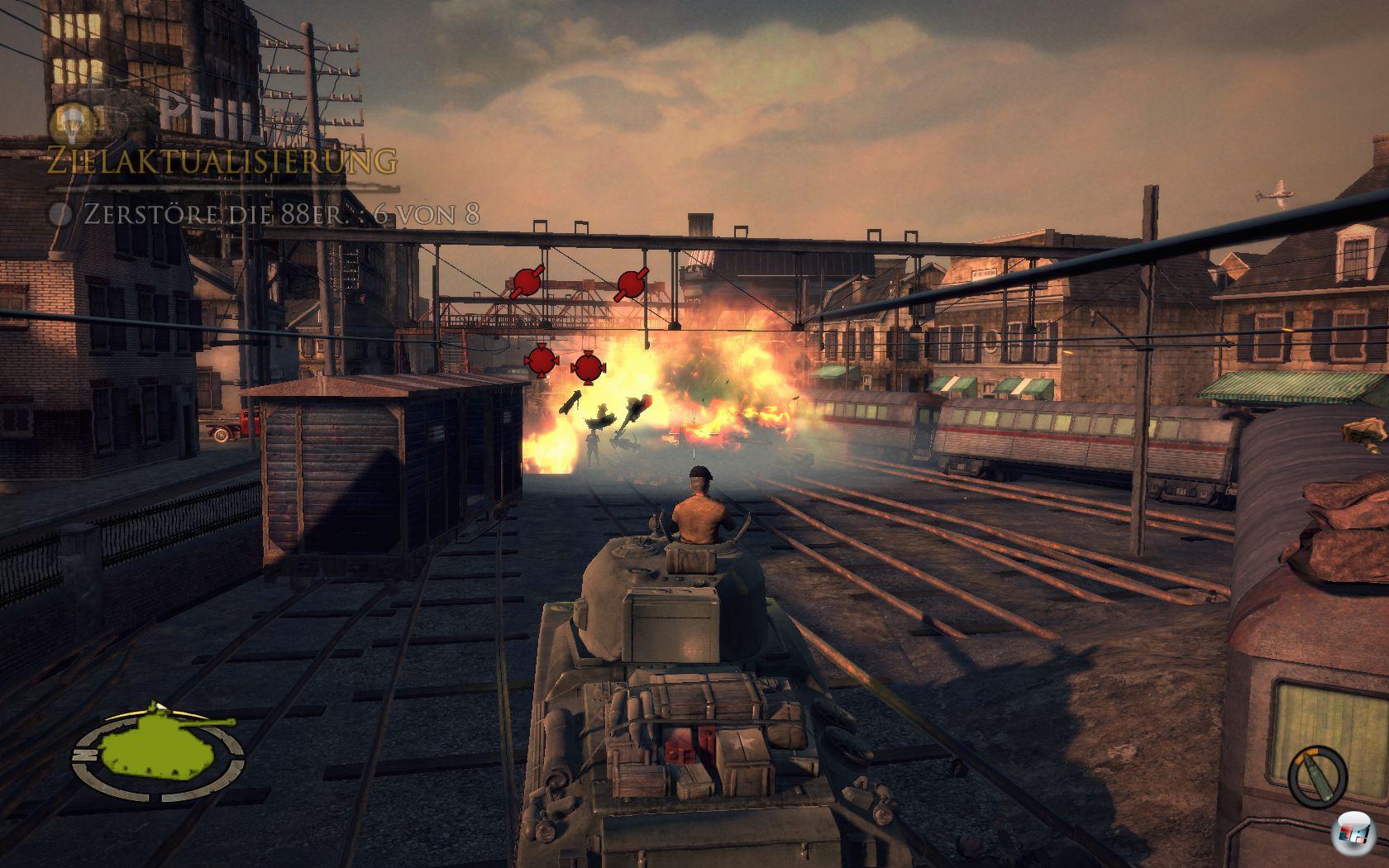 Ab und zu trennt ihr euch außerdem von eurem Team und durchforstet in Rambo-Manier eine Kirche oder ein anderes Gebäude. Oder ihr nehmt in einem Firefly- oder Sherman-Panzer Platz und holzt gegnerische Geschütze in ihre Einzelteile – ein äußerst spaßiges Unterfangen. All die unterhaltsamen Auflockerungen können aber nicht darüber hinwegtäuschen, dass es dem Rest der Kampagne ein wenig an Abwechslung fehlt. Komplexe Manöver à la Socom: Tactical Strike gibt es hier nicht und auch die teils recht engen Levels sorgen dafür, dass ihr eure Angriffstaktik nicht all zu stark variieren könnt. Viel zu oft versperren euch undurchdringliche Hecken den Weg zu einem Hinterhof, der sich eigentlich prima für einen Umweg geeignet hätte. In der zweiten Spielhälfte erwarten euch glücklicherweise weitläufigere Areale mit alternativen Laufwegen.