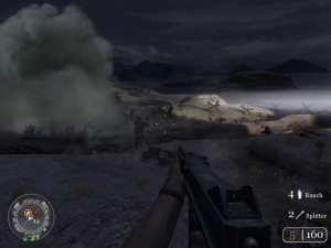 Sie ziehen sich bei Beschuss schnell zurück, benutzen gern und oft Granaten und feuern noch halbtot im Liegen weiter. Lästig (bzw. gut für den Spieler) ist ihr Habitus, sehr berechenbar zu agieren: Beim Nachladen wechseln sie kaum die Position und tauchen fast immer an derselben Stelle wieder auf, an der sie abgetaucht sind – Bumm, Treffer! Sie machen sich weder die Mühe, die Umgebung für adaptierten Schutz zu nutzen noch wechseln sie unverhofft die Laufrichtung beim Sturm – man muss einfach nur vorhalten und abdrücken. Generell solltet ihr mit der Munition haushalten, denn ihr dürft nur zwei Waffen (plus einige Granaten) mit euch herumschleppen. Gehen euch die Kugeln aus, bleibt euch nichts anderes übrig, als die Knarren Gefallener aufzuklauben. Ganz der Serientradition entsprechend bedient ihr außerdem stationäre Geschütze oder befindet euch gelegentlich auf der Ladefläche eines LKW, bewaffnet mit MG und Panzerfaust, um von hinten anrollende Feinde zu erledigen – same old, same old.Mein Hauptquartier, mein Panzer, meine Sturmtruppen
