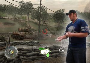 | Mit dem Wiimote Granaten zu werfen ist eine der komplexeren Übungen in Call of Duty 3. |
