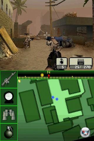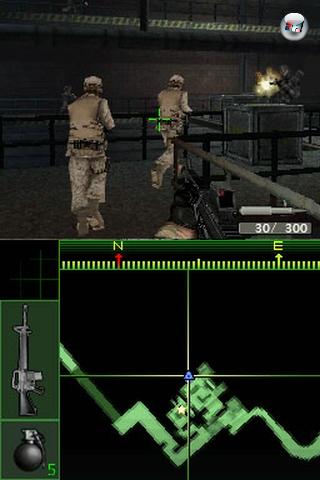 Das Gleiche gilt für Call of Duty 4 (CoD 4): Die Grafik ist für DS-Standards wirklich sehr gut, läuft meist flott, bietet viele 3D-Objekte, gute Effekte und dicke Explosionen – aber eben nur innerhalb dieser engen Grenzen, die aktuellen Standards etwa zehn Jahre hinterher hängen. Und die Kontrolle macht zwar das Beste aus ihren Möglichkeiten, was aber nicht bedeutet, dass man daran Freude hat: Mit dem Digipad (Linkshänger greifen zu den Buttons auf der anderen Seite) lauft ihr in alle Richtungen, die Sicht kontrolliert ihr per Stylus auf dem Touchpad. Doppeltapser bewirken u.a. einen flotten Sprint, einen Waffenzoom oder schnelles Ducken, gefeuert wird mit der Schultertaste.![]()