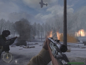 Genau wie Call of Duty folgt auch United Offensive dem Credo des Multifrontenkriegs: So beginnt ihr als amerikanischer Soldat in der Schlacht in den Ardennen, wechselt dann als Brite an die Küste Siziliens, und landet im letzten Spieldrittel als Russe im Gemetzel um Kursk. Insgesamt erwarten euch 13 Missionen, die ihrerseits noch in bis zu 14 kleinere Aufträge unterteilt sind.