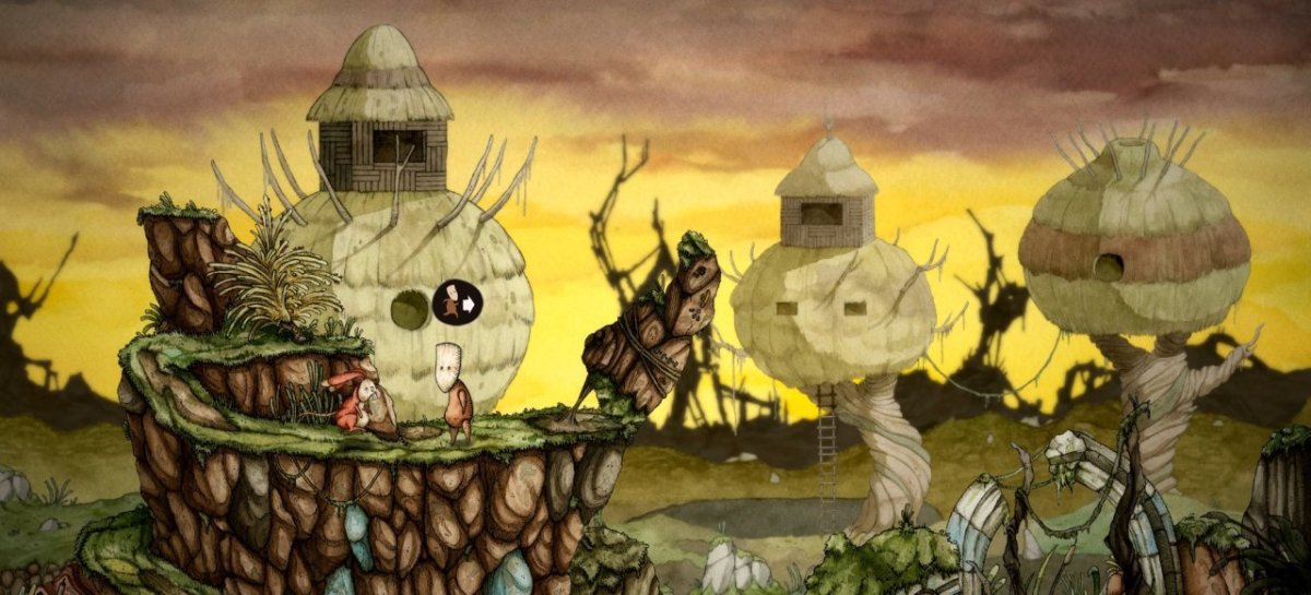 Die Geschichte wird hauptsächlich durch einen Erzähler vorgetragen, der auf Tekus aktuelle Situation oder sonderbare Geschehnisse in der Spielwelt hinweist. In den seltenen, aber hübsch gestalteten Zwischensequenzen kommt dann sogar richtige Lagerfeuer-Stimmung auf, wenn die angenehme Märchenonkel-Stimme von der tragischen Vergangenheit des Stamms berichtet. Auch in den normalen Leveln gelingt es Candle, mit seinen handgemalten Aquarell-Zeichnungen immer