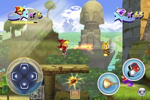 Eines der schlimmsten Hinkebeine der meisten iPod-Spiele ist die Steuerung: Wird ein Game direkt für die Plattform entwickelt, ist meist alles in Ordnung. Sobald es aber darum geht, bekannte Namen oder auch nur Genres auf die steuerungstechnisch stark eingeschränkte Plattform zu hieven, sind viele Entwickler mit ihrem Latein schnell am Ende – man denke dabei mit Schaudern an die furchtbaren Umsetzungen von Flashback oder MegaMan 2. Ganz so schlimm ist es bei Castle of Magic nicht, aber auch weit von optimal entfernt: Das virtuelle Digipad ist nicht ansatzweise so präzise, wie es so mancher Sprung verlangt, reagiert träge auf Eingaben und ist viel zu oft schuld am Verlust der (reichlich vorhandenen) Bildschirmleben. Neben dieser Eingabe wird auch der beschleunigungsmesser genutzt: Schüttelt man das Gerät, löst man damit spezielle Angriffe aus, die z.B. einen Bienenschwarm zuverlässig aus der Luft holen.