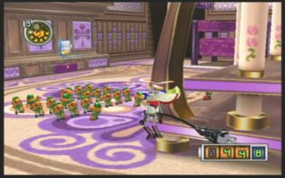 Ebenfalls etwas gewöhnungsbedürftig, aber originell ist die Soundkulisse des Spiels. Neben der eher unauffälligen musikalischen Untermalung, stellen die Sound-FX etwas besonderes dar. So erklingen in Chibi-Robo nämlich nicht nur vorgefertigte Samples, sondern jede eurer Aktionen wird von einem eigenen Klang begleitet, was in der Praxis dann einen gewissen melodiösen Charakter bekommt. So ertönt beispielsweise bei jedem Schritt abhängig vom jeweiligen Untergrund ein Instrument – vom kurzen Saitenanschlag einer Harfe beim Sprinten über Fliesen bis hin zu schnaubenden Akkordeonklängen beim Schlurfen über einen Teppich.