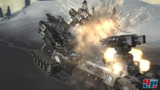 Die simpel gehaltene Steuerung geht leicht von der Hand, lässt allerdings ein paar Feinheiten wie manuelles Zoomen vermissen. Vermisst haben wir auch eine Optimierung für 4:3-Fernseher oder -Monitore, denn wer keine 16:9-Glotze besitzt, zieht mit dicken Letterbox-Balken in die Schlacht. Zudem hätte sich From Software etwas mehr Mühe mit dem Gestalten der Spielumgebungen geben können. Diese sehen nämlich trotz ein paar netter Shader- und Partikeleffekte äußerst trist und nicht wirklich nach Grafik der nächsten Generation aus. Die Mechs können sich hingegen sehen lassen. Vor allem großkalibrige Gegentreffer, die euer Cockpit so richtig durchschütteln und euer Fadenkreuz auf unfreiwillige Wanderschaft schicken, vermitteln ein packendes Mittendrin-Gefühl. Die Akustik geht ebenfalls in Ordnung, wirkt auf Dauer aber zwangsläufig etwas monoton – vor allem das Funkensprühen eines beschädigten Mechs kann man irgendwann einfach nicht mehr hören. Die meiste Zeit lauscht ihr aber sowieso den Funksprüchen eurer Verbündeten – sofern der Kontakt von feindlichen Spähern nicht gekappt wird…