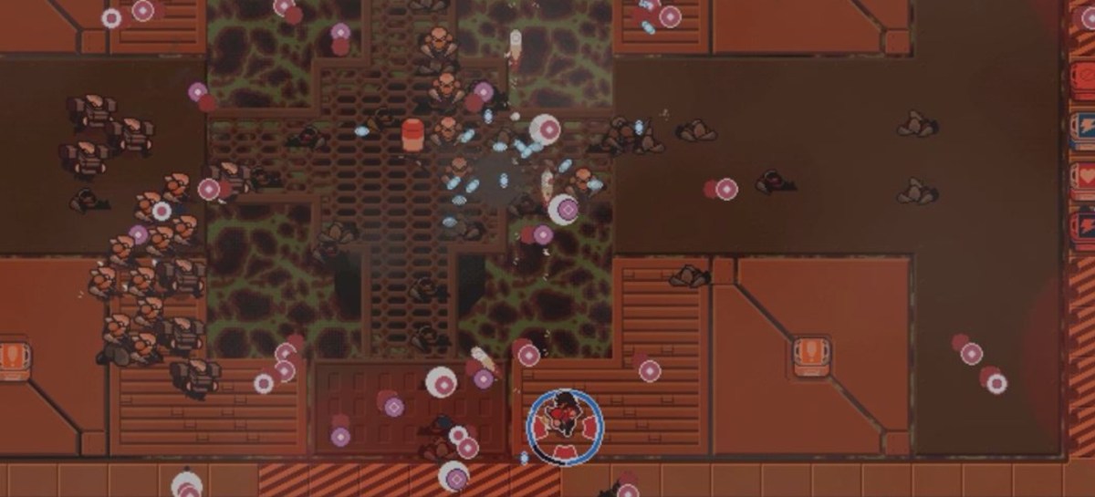 Da es in Circuit Breakers keine Story gibt, die im Arcade-Modus die Abschnitte auch nur lose verbinden würde, kann man sich auf die Action konzentrieren, die einem bereits ab dem ersten Abschnitt alles abverlangt, aber simpel gestrickt ist: Mit dem linken Stick lenkt man die Figur, mit dem rechten gibt man Schüsse ab, mit der linken Schultertaste kann man einen Schild aktivieren. Der Retro-Charakter wird dabei nicht nur durch die Pixel-Kulisse mit ihren grob strukturierten Helden- und Gegner-Sprites unterstrichen. Auch die Reduktion der Schusskontrolle auf acht Richtungen statt einer kompletten 360-Grad-Steuerung wie z.B. in Housemarques Dead Nation ist als eine Verbeugung vor der guten alten Zeit zu verstehen. In diesem Fall passt sie zwar zum Grafikdesign, ist aber angesichts der schnellen Action eher hinderlich, wenn man genaue Schüsse anbringen will.
