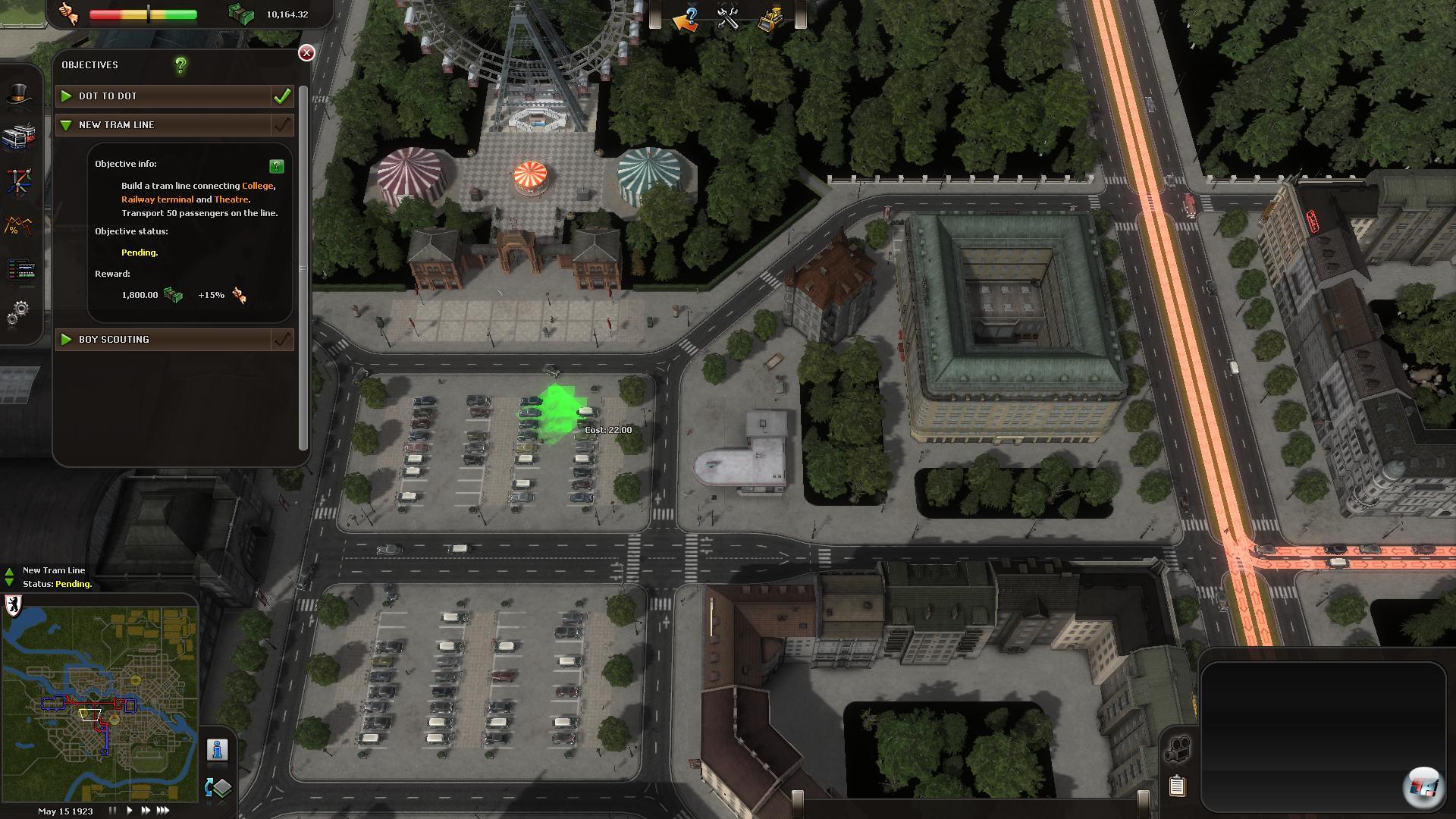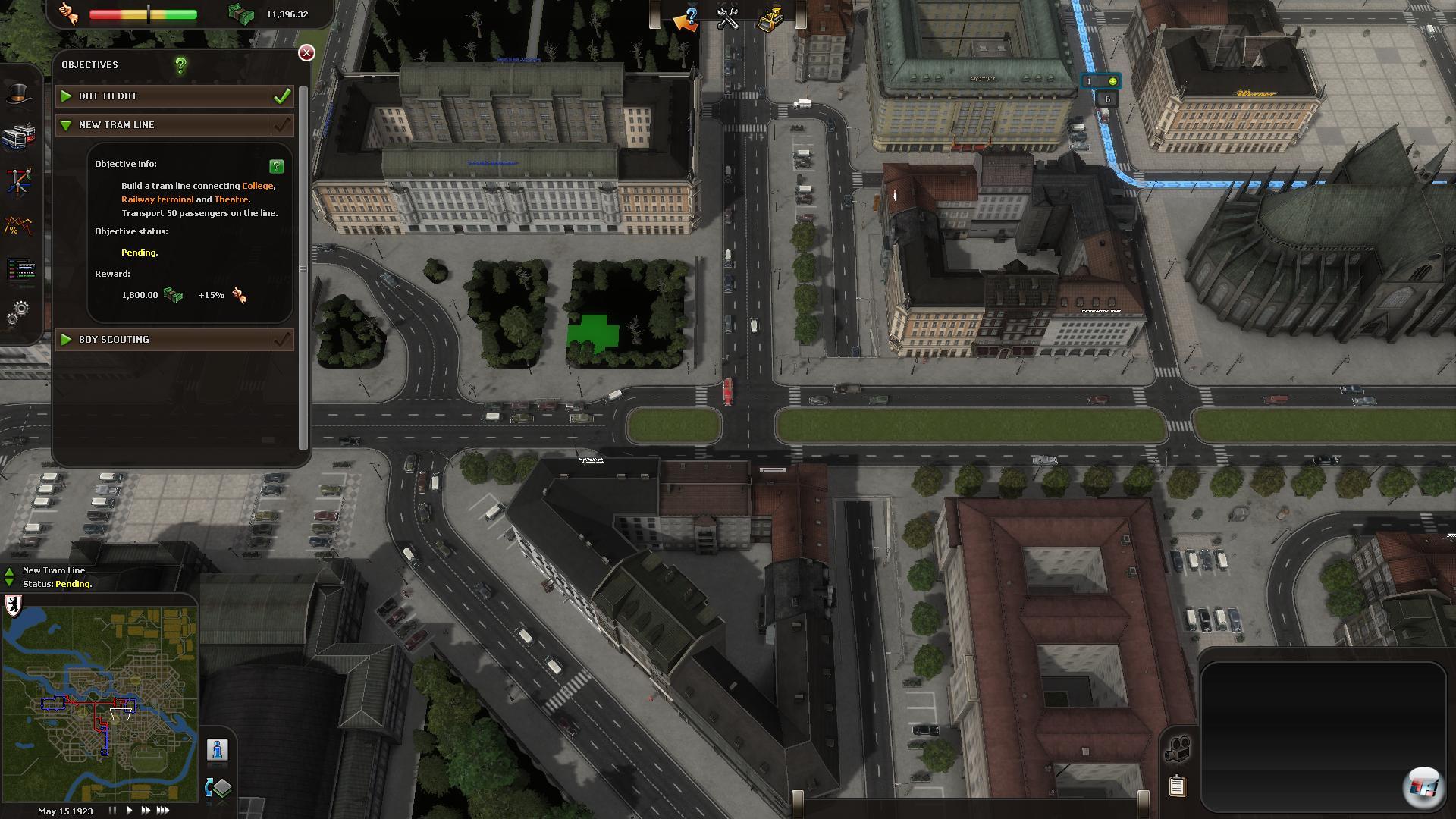 Dazu passt es dann auch, dass die Aufträge, die man so angeboten bekommt, ebenfalls optional sind. Man kann sie machen, da sie Geld oder größere Zustimmung unter den Fahrgästen bringen, muss es aber nicht. Wer keine ellenlange und wenig lukrative Buslinie in einen bäuerlichen Vorort am Rand der Karte bauen möchte, kann die Aufgabe einfach ausschlagen. Andererseits sind die Ziele oft sinnvoll, etwa wenn wichtige Plätze wie der Bahnhof, das Stadttheater und die Universität per U-Bahn verknüpft werden. Die Missionen sind stets klar formuliert, so dass man sie auch versteht, wenn man sich fürs englische Original entscheidet. Vieles ist nämlich intuitiv zu verstehen und es wird zudem bald eine deutsche Version von Koch Media geben.