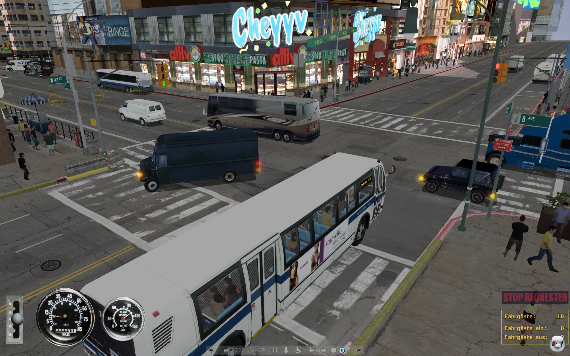 | 42. Ecke 8. Avenue aus der Vogelperspektive. Steuern sollte man den Bus in dieser Kameransicht allerdings nicht. |