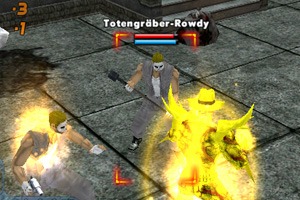 | Mit dem Feuer-Elementarkräften setzen wir den Feinden zu. |