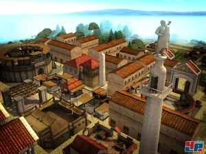 Äußerlich ist CivCity: Rom wenig prachtvoll, da die Grafik an das eher unspektakuläre Stronghold 2 erinnert. Euch erwartet eine Pseudo-3D-Optik, die grau, eckig und unscharf wirkt. Bewegung müsst ihr mit der Lupe suchen – nirgends kräuselt sich Rauch, die Bäume sehen kahl aus und das Wasser ist nicht der Rede wert. Buntes Treiben auf den Gassen findet nicht statt. Schaut ihr euch den unförmigen Esel in der Lagerhalle näher an, soweit es der begrenzte Zoom zulässt, bekommt ihr fast Mitleid mit dem armen Tier. Viele der Gebäude sehen überhaupt nicht römisch aus, wie etwa das oberhässliche Stadtzentrum. Einzig die großen Gebäude wie Tempel, Arenen oder Bäder strahlen mehr imperialen Glanz aus.