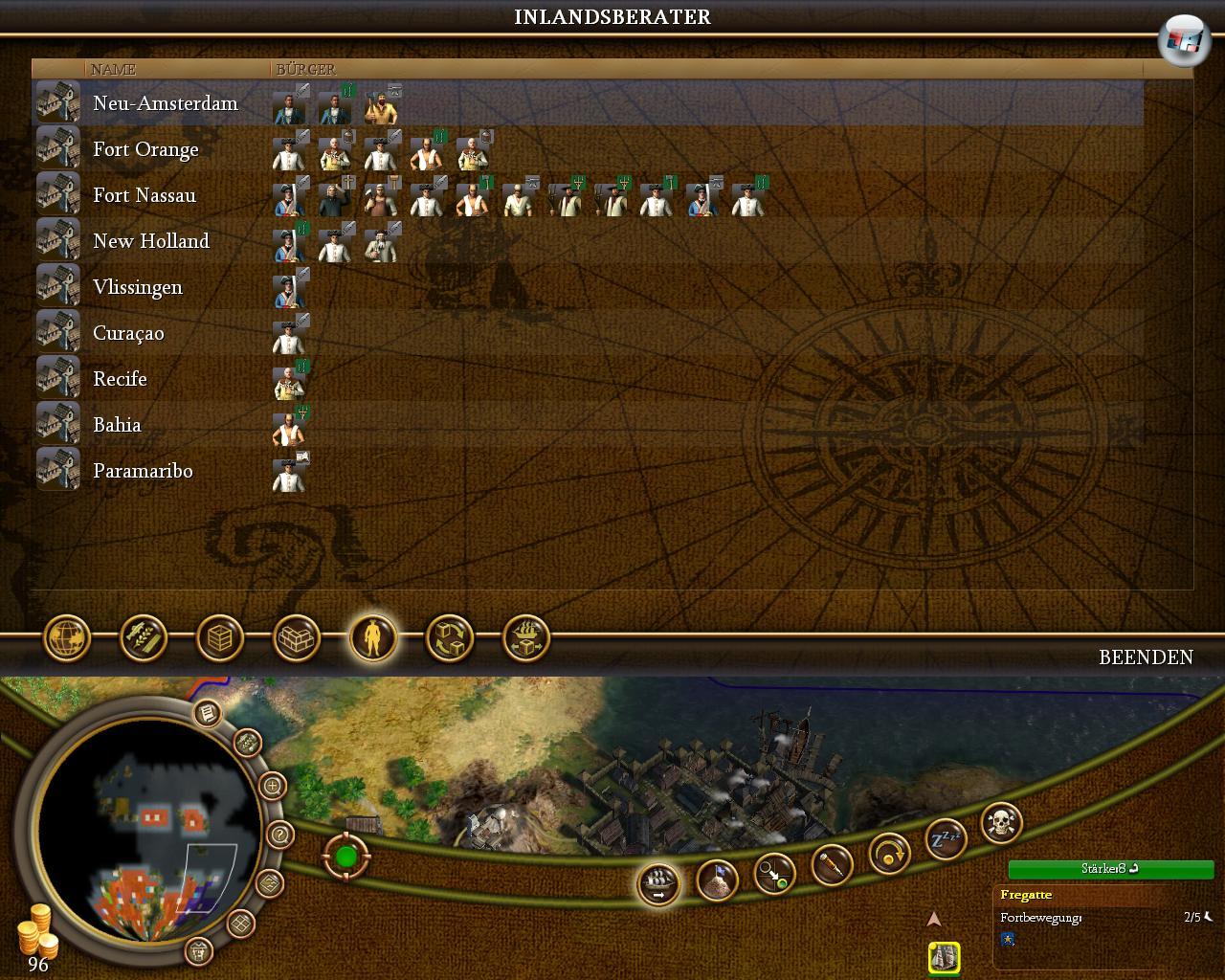 noch so schützen, dass sie nicht gleich von Indianern überrannt oder von den drei europäischen Konkurrenten vereinnahmt werden. Und dann muss man mit Indianern aus zig Stämmen handeln, sie bekehren und mit Geschenken beehren. Und dann muss man selbst Waffen produzieren. Und dann muss man die blöden Freibeuter mit eigenen Linienschiffen abwehren. Und dann. Und dann. Und dann.