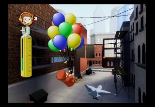 Auflockernde Flugeinlage: Mit einem Bündel Luftballons navigiert ihr Coco durch enge Häuserschluchten.