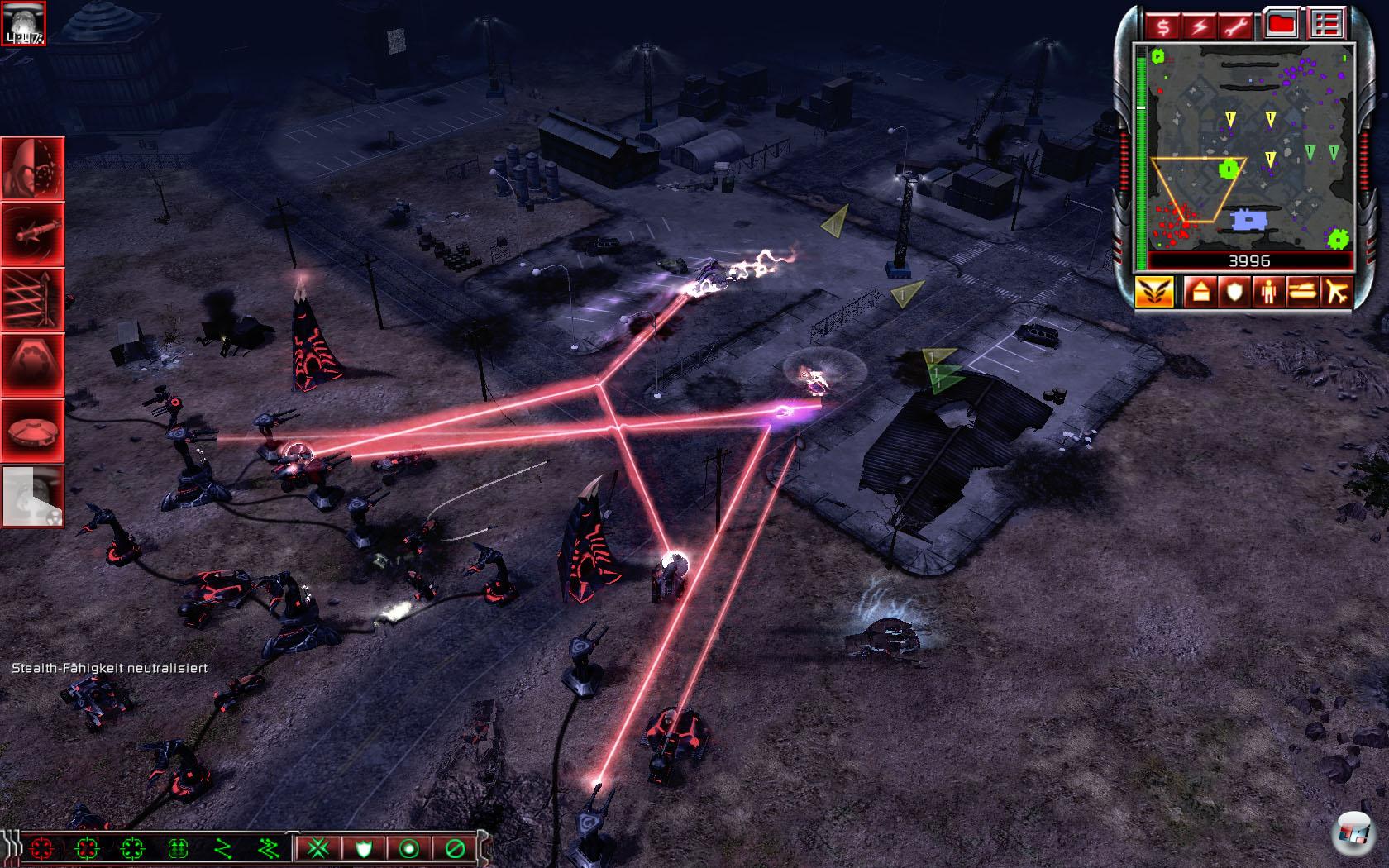Unausgewogen in Bezug auf den Schwierigkeitsgrad ist die Abfolge der Einsätze. So habe ich für eine „Standard-Basisbau-Alles-Töten“-Mission rund 30 Minuten gebraucht und für den nächsten Basisbau-Einsatz nur sechs Minuten, weil ich mit zehn Nodmots die Kraftwerke und das Einsatzziel zerstört hab – dem Gegner schien dieser Blitzangriff nicht zu stören. Größere Verbesserungen bei der Computerintelligenz braucht ihr also nicht zu erwarten – sie setzen gerade mal die neuen Einheiten ein. So grasen die Sammler weiterhin ungünstige Flächen ab und die Wegfindung ist und bleibt ein Quell für unnötige Verluste. Beispiel: Zwei Drittel der Truppen fahren rechts lang *richtig*, ein Drittel fährt links vorbei *falsch* und wird beschossen, weil die anderen Einheiten wohl den Weg kurzzeitig blockieren.