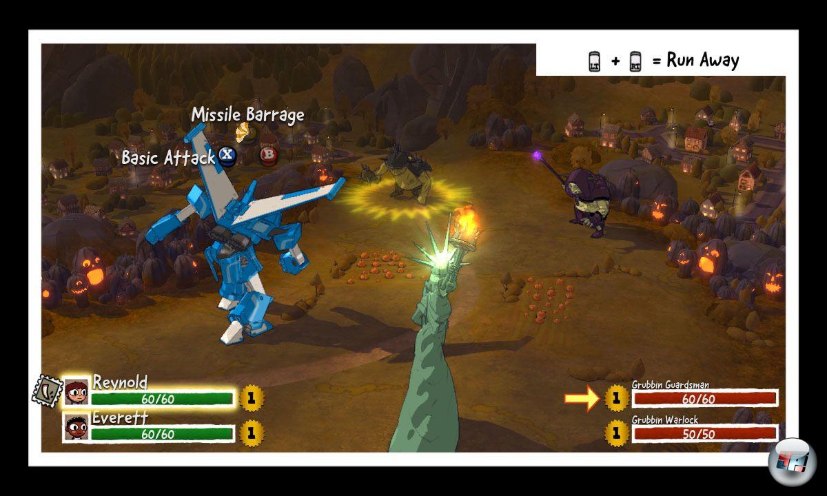 Da sich der Titel in erster Linie an jüngere Spieler richtet, fällt der Humor natürlich nicht ganz so skurril wie in anderen Double Fine-Produktionen aus. Grund zum Schmunzeln gibt es dennoch genug – auch für ältere Spieler. Schade ist nur, dass sich der nicht anpassbare Schwierigkeitsgrad ausschließlich an jüngere Semester richtet. Egal, ob Kämpfe, Aufgabenstellungen oder Geschicklichkeitseinlagen, geübte Spieler werden nie auch nur ansatzweise gefordert. Zudem bieten die rundenbasierten, mit simplen Reaktionstests garnierten Schlagabtausche kaum taktische Finessen.