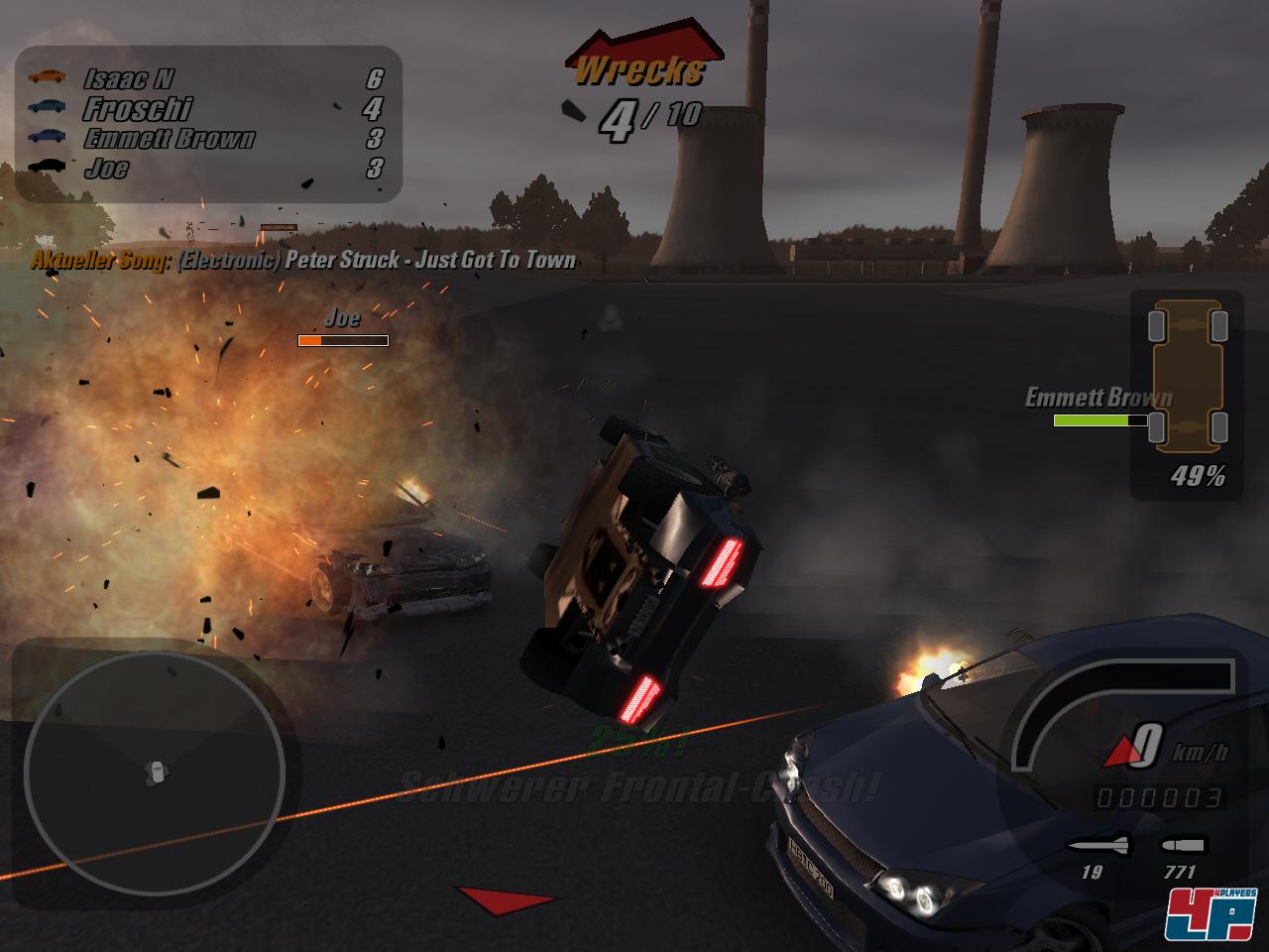 Ist es nicht ärgerlich, wenn man in anderen Rennspielen für das beherzte Rammen eines Konkurrenten oder den einen oder anderen rein zufällig passierten Auffahrunfall Strafpunkte aufgebrummt oder gleich vom Rennen ausgeschlossen ist? Nicht so bei Crashday: Wie der Titel ziemlich unsubtil andeutet, ist hier das Zerdeppern von gut poliertem Blech nicht nur gern gesehen, sondern ein Muss!