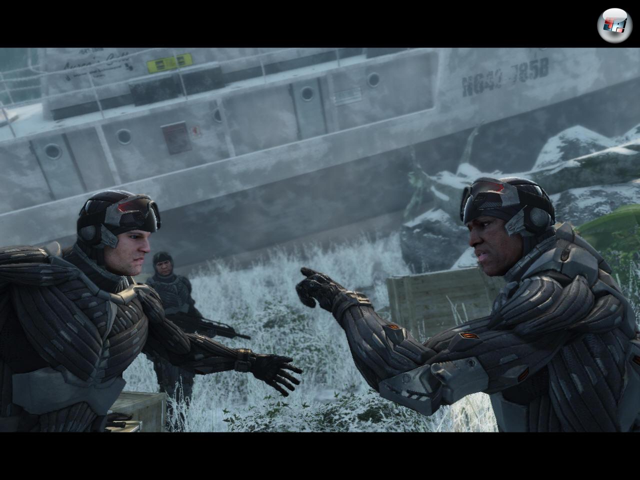 Geschichte um einen Trupp Superanzug-Träger, die in naher Zukunft in Nordkorea ein entführtes Wissenschaftler-Team suchen und auf Frostaliens treffen, wäre vermutlich selbst Uwe Boll zu flach. Aber egal, die deutsche Sprachausgabe ist gut, die Echtzeit-Cutscenes sind direkt in die Spielegrafik integriert, und ganz ehrlich: Die Story spielt hier nur die fünfte Geige, keiner dürfte Crysis mit der Hoffnung im Hinterkopf starten, einen Roman von Dostojewski spielen zu dürfen.