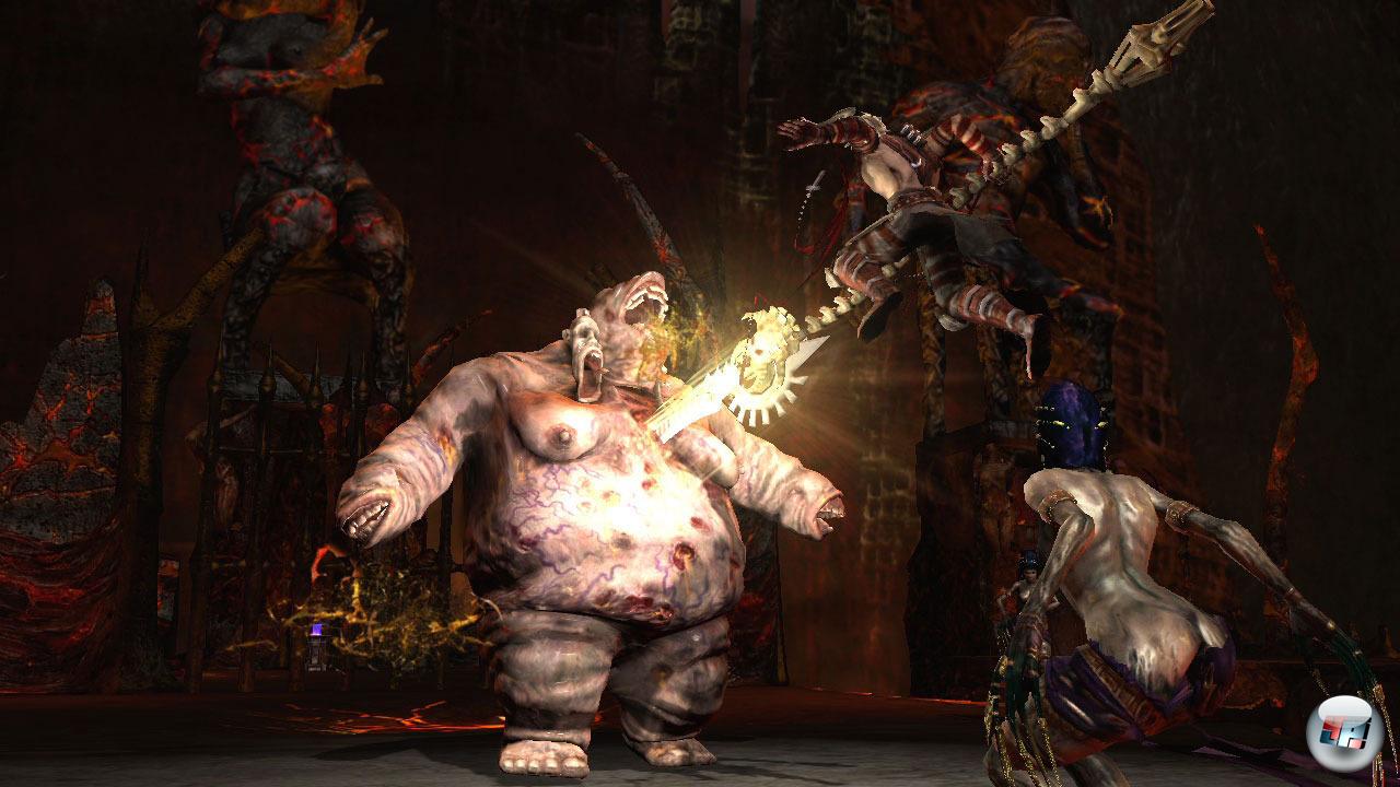 Insgesamt gibt es eine stattliche Anzahl an Gegnertypen, doch leider verschießen die Entwickler ihre kreative Munition etwas zu schnell. Die Folge: Man erlebt ab einem bestimmten Zeitpunkt kaum mehr Überraschungen und trifft immer wieder auf die gleichen Monsterhorden und Feinde wie Feuerschergen, Wächterdämonen oder Häretikern. Doch nicht alle Feinde wollen einem ausschließlich an die Wäsche: Hat man eine der asterianischen Bestien erstmal in die Knie gezwungen, kann man nach einer Quick Time-Sequenz selbst die Kontrolle über das Biest übernehmen und kräftig austeilen. Leider muss man immer wieder die gleichen Knöpfe drücken – sei es hier oder in bestimmten Boss oder Fluchtsequenzen. Im Gegensatz zu God of War, bei denen die Quick Time-Events variieren, wird Dante irgendwann berechenbar. Unschöne Überraschungen in Form von unfairen Trial- & Error-Abschnitten gibt es aber trotzdem noch oben drauf, die manchmal für Frust sorgen. Zumindest sind Speicherpunkte an Beatrice-Statuen sowie weitere Checkpunkte meist sehr fair verteilt. Zwischen dem Kämpfen gibt es außerdem immer wieder kleine Rätsel- oder Geschicklichkeitseinlagen zum Verschnaufen. Diese beschränken sich zwar meist auf das Verschieben von Kisten, Umlegen von Hebeln sowie dem Schwingen an Seilen, aber sorgen zumindest für Abwechslung, auch wenn es im Verlauf des Spiels zu einigen Wiederholungen kommt. In den Kämpfen übertreibt man es dagegen manchmal mit der Anzahl an Gegnerwellen. Dies stört weniger aufgrund des Schwierigkeitsgrades, sondern weil man nach ein paar Minuten die Metzelorgien einfach satt hat und die künstlich abgesperrten Arenen lieber wieder verlassen würde, um die bombastische Welt mit ihren Ehrfurcht einflössenden Schauplätzen und z.T. famosen Grafikeffekten weiter erkunden möchte. Wenn Fackeln nervös im Sturm lodern, feine Funken-Partikel aus einem See aus Lava aufsteigen oder das Bild plötzlich heraus zoomt und einem dabei das monumentale Ausmaß der Architektur bewusst wird, klappt die Kinnlade bei dieser Pracht schon mal nach unten. Doch trotz stabiler Bildrate und intuitiver Steuerung ist nicht alles perfekt: Vor allem die fest fixierte Kamera bereitet ab und zu Probleme und verdeckt vor allem im Kampf mit größeren Gegnern oft den Blick auf die Spielfigur. Ärgerlich ist zudem, dass die Spielstände sowohl auf der PS3 als auch der 360 an die Spracheinstellung gekoppelt sind. Möchte man z.B. auf Englisch weiterspielen und stellt dafür die Sprache in den Systemeinstellungen der Konsole um, wird der (deutsche) Spielstand nicht mehr erkannt. Im Spiel selbst gibt es keine Möglichkeit, die Sprache in den Optionen direkt umzustellen.