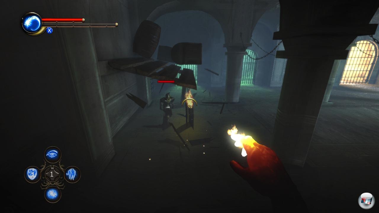 Apropos Elemente: Das Spiel, auf Xbox 360 mit dem Untertitel Elements versehen, gleicht seinem PC-Vorbild wie ein Ei dem anderen. Ubisoft Annecy kommt bei der Umsetzung zwar Rollenspiel-Neulingen entgegen, bleibt in allen wesentlichen Punkten aber dem Original der Arkane Studios treu. Die packende Geschichte, die unheimlichen Albträume, das düstere Mittelalter, das intelligente Spiel mit „Gut“ und „Böse“ – Ubisoft tat gut daran, Arkanes Vorlage nicht zu verfremden! Allerdings hätte man die Inszenierung des interaktiven Teils dynamischer gestalten können. So imposant das Orchester in filmischen Einspielungen nämlich den Ton angibt, so sehr fehlt die Musik, wenn die eigentliche Welt ohne Soundtrack auskommt. Dafür erschaffen die Bilder eindrucksvolle Kulissen mit massiven Steinwällen zwischen hohen Felsen und Mauern, die finstere Schatten werfen.