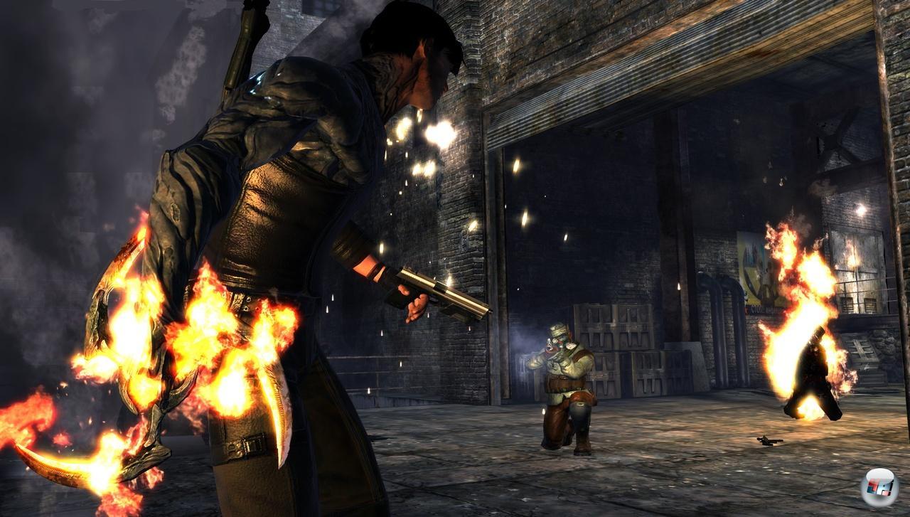 Das Waffensystem abseits der Glaive und der gegnerischen Feuerspritzen wirkt nur auf Anhieb gut: Auf dem an bestimmten Punkten zugänglichen Schwarzmarkt könnt ihr euch zu dummen Sprüchen von einem Hehler unregistrierte Waffen kaufen. Das bedeutet, ihr könnt zwei von ihnen immer am Mann tragen, wobei wir dringend zur Schrotflinte raten, die sich im Kampf nicht nur als potenter Gleichmacher erweist, sondern eine Durchschlagskraft wie zu guten alten Umbrella-Zeiten besitzt – cool! Munition findet ihr im Normalfall zuhauf auf den Schlachtfeldern. Das ist noch nicht das Problem. Auch die Aufrüstungen, die in den Abschnitten versteckt wurden und die ihr an freien Slots anbringen könnt, sind durchaus positiv zu werten. Nur wieso kann ich diese Aufrüstungen später nicht mehr entfernen oder austauschen? Da ich vor allem in der Anfangsphase nicht genau weiß, mit welchen Goodies ich meine Bleispritze ausrüsten kann, nehme ich natürlich alles, was ich kriegen kann. Wenn ich allerdings später feststelle, dass ich bei Waffe X vielleicht doch besser mit Aufrüstung Y aufgehoben wäre, ist es zu spät. Kein Wechsel mehr möglich. Das ist einerseits schade und sorgt für deutliche Abzüge in der B-Note.