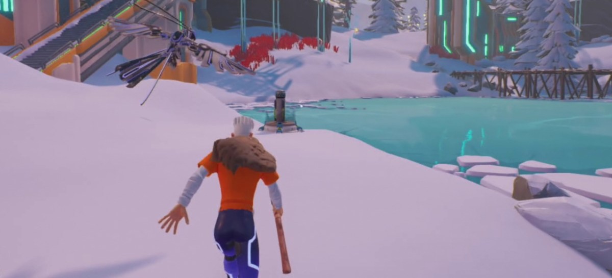 Aber wie spielt sich Darwin Project? Grundsätzlich kämpfen zehn Spieler in einer weitläufigen Arena nach Battle-Royale-Prinzip ums Überleben – wer als Letzter steht, der gewinnt. Zwar kein Chicken Dinner, aber viel Ehre. Um das Manko mancher Titel dieses Shooter-Subgenres abzufangen, in denen man 90% der Zeit ohne zu kämpfen herumläuft und Beute aufsammelt, wird hier der Überlebensaspekt stärker gewichtet: Weil es bitterkalt ist, hat jeder Spieler eine Temperaturleiste – ist die im Keller, sinkt die Lebensenergie. Also solltet ihr regelmäßig Bäume fällen: Holz braucht man nämlich nicht nur zum Herstellen von Pfeilen, sondern auch für ein kleines Lagerfeuer – und schon ist euch wieder mollig warm.