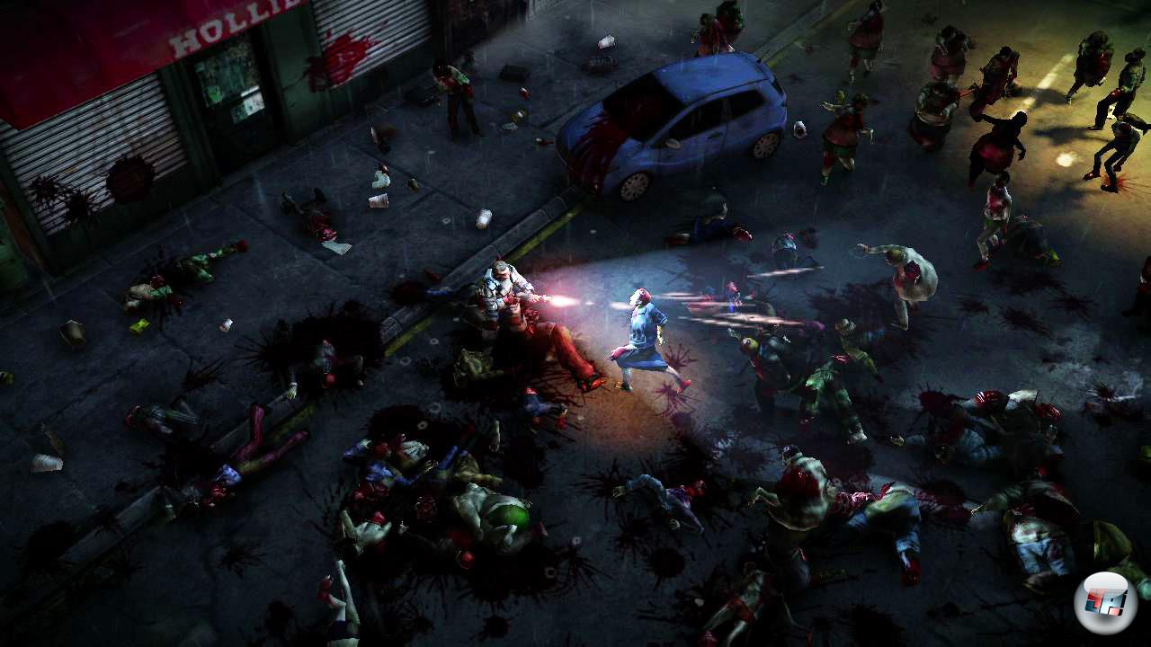 Auch der späte Zombieritt lohnt sich: Das Team von Housemarque inszeniert ebenso düstere wie fordernde Zwei-Stick-Action, die gleichzeitiges Laufen in die eine und das Anvisieren einer anderen Richtung ermöglicht. Man kann die Kampagne entweder offline mit einem Kumpel oder online spielen, so dass man mit einem männlichen und weiblichen Charakter zu zweit unterwegs ist. Man bewegt seine Figur(en) über zehn Missionen hinweg durch menschenleere Straßen, Krankenhäuser oder Militäranlagen – überall liegen Trümmer, defekte Leuchtreklame flackert und zwielichtige Musik stimmt auf das kommende Grauen ein.