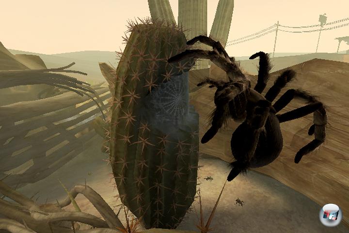 Deadly Creatures begibt sich nämlich nicht mit bettelndem Blick in die Hände einer Generation mit Aufmerksamkeitsdefizit, die auf Teufel komm raus alle drei Sekunden etwas Neues erleben muss. Es schleicht auch nicht behäbig voran. Aber es nimmt sich eben die Zeit, die ein Spinnentier braucht, bis es vom Anfang einer Lichtung bis zu deren Ende benötigt. Je länger ich so auf allen Achten über Felsen, Kakteen und Schrottplätze gekrabbelt bin, desto intensiver empfand ich das Gefühl, tatsächlich als Spinne oder Skorpion in meinem eigenen Reich unterwegs zu sein. Erstaunlich, wie viel es in einem umgekippten Kleinwagen zu entdecken gibt…