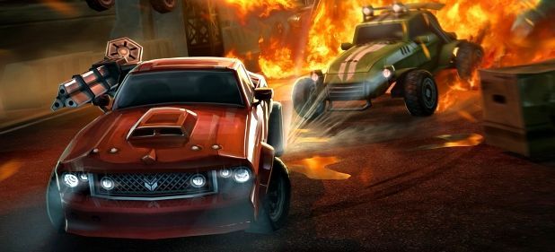 Ähnlich wie im ersten Death Rally oder im guten alten Super Cars 2 für Amiga sieht man die Straßenschlacht aus der Luft, so dass die bewaffneten Vehikel wie Spielzeugautos wirken. Die Steuerung ist simpel gestrickt, wirkt zunächst aber ungewohnt. Ich gebe nicht mit den L- und R-Triggern Gas – stattdessen fährt mein Wagen immer in die Richtung, welche ich mit dem Stick vorgebe. Eine alternative Konfiguration gibt es nicht; nur Tastatur-Benutzer dürfen das Layout umbelegen. Wer möchte, kann die feste Perspektive auf eine Verfolger-Sicht umstellen: Als die Kamera fest hinter meinem Wagen schwebte und jede Drehung mitmachte, konnte ich die Kurven etwas besser einschätzen.
