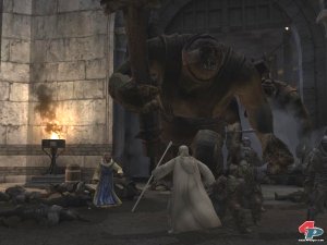 Das ist zum größten Teil der verhunzten Kameraführung zu verdanken, die sich nicht manuell korrigieren lässt, und euch somit mehr als ein mal blind in die Schlacht wirft. Neben all der Hauerei müsst ihr auch Maschinen bedienen , um beispielsweise Tore zu öffnen, oder dürft herumstehende Gegenstände benutzen – so könnt ihr beispielsweise in der Höhle der Riesenspinne Kankra Netze verbrennen oder Horden kleiner Krabbler auseinandertreiben. Der geschickte Einsatz von Katapulten und Speeren erleichtert auch so manche Mission: wenn ihr beispielsweise 80 Orks töten müsst, ist jede Hilfe sehr willkommen.