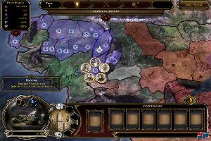 einer großen Karte gegen einen oder mehrere Computergegner bzw. online mit Freunden und kämpft entweder bis zum letzten Gebiet oder bis zur Einnahme des Heimatlandes. Ganz in Brettspielmanier macht jeder seine Bau- und Bewegungszüge, bevor es zum Kampf kommt. Jede eroberte Provinz bringt euch kleine Vorteile, jedes eroberte Reich richtig große. Aber bis auf mehr Angriffskraft hier oder Kommandopunkte da gibt es nicht viel zu entdecken – Diplomatie gibt’s gar nicht und Rohstoffe spielen keine Rolle.