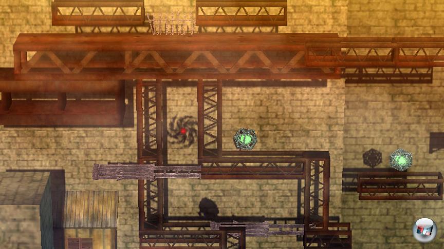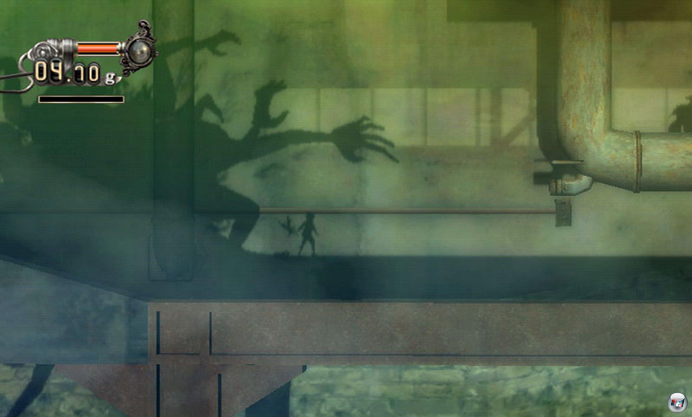 Für Spannung sorgen auch die geheimnisvollen Ambient-Klänge im Hintergrund – das leise Rauschen, ab und an klingelnde Windspiele und entfernte Geräusche ließen mich sofort komplett in die Spielwelt abtauchen. Ein wenig schade ist, dass sich die Sounds zu häufig wiederholen. Auch auf visueller Ebene ist die Redundanz das größte Problem: Die verwaiste Ruine, die hellen Pastellfarben, die unheimlich vor sich hin blubbernden Schattenmonster und sämtliche anderen Designelemente greifen zwar perfekt ineinander – auf Dauer fehlt es aber an Abwechslung. Zu lange muss ich mir die sich ähnelnden Wände und Röhren anschauen. Die Metalloberflächen könnten auch auf Wii ruhig etwas schärfere Texturen bieten. Dank dicker Pixeltreppchen sieht mein Alter Ego in manchen Perspektiven ebenfalls schrecklich ausgefranst und unansehnlich aus. Gerade in einem Spiel, welches so viel Wert auf Schattenspiele legt, sollte man deren Darstellung besser umsetzen.